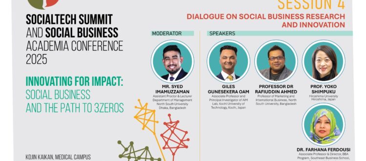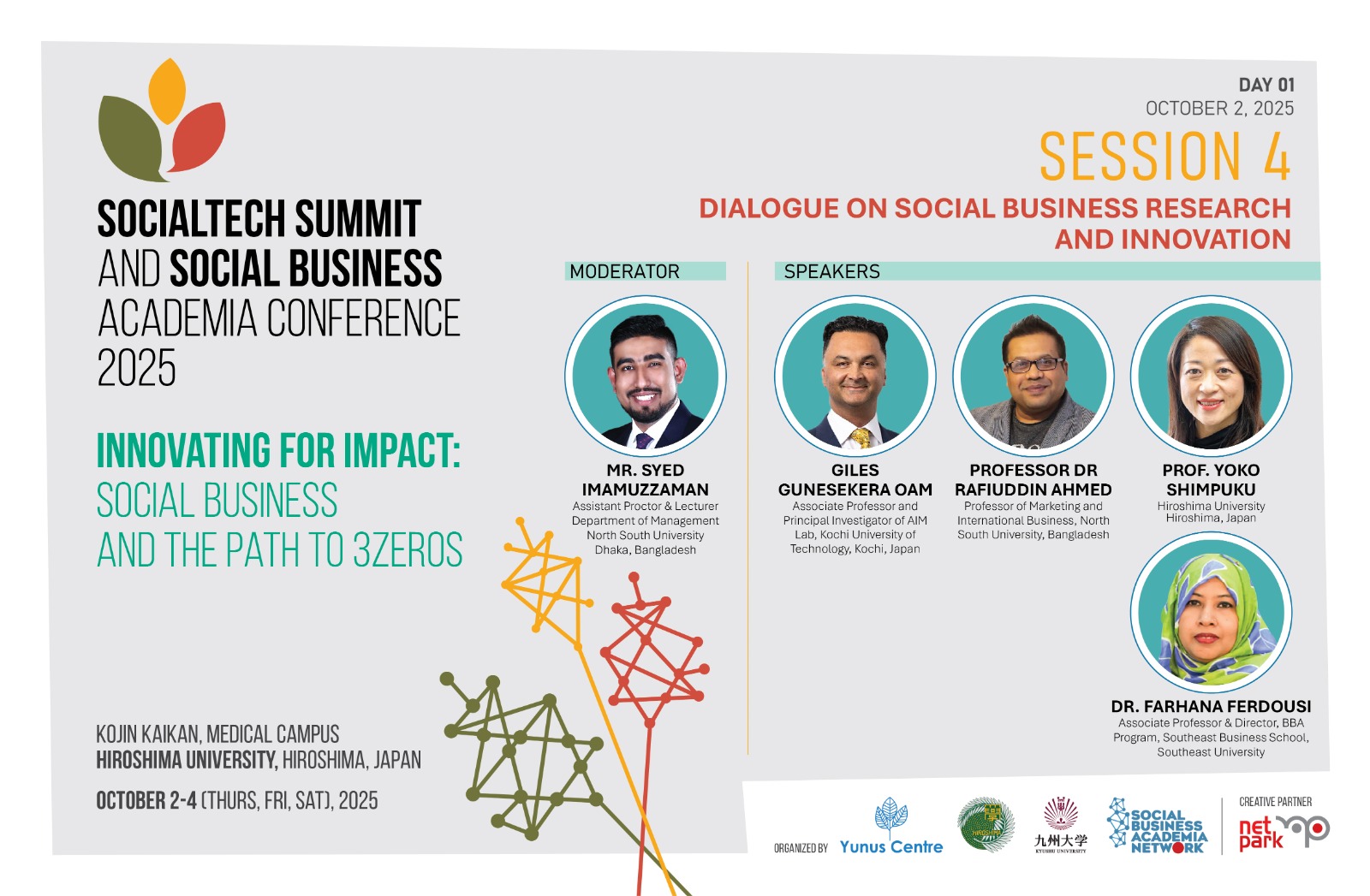 30 Aug [D1S4] Session Title: Dialogue on Social Business Research and Innovation Giles, Prof. Dr Rafiuddin Ahmed, Prof. Yoko Shimpuku, Dr. Farhana Ferdousi Moderator: Mr. Syed Imamuzzaman