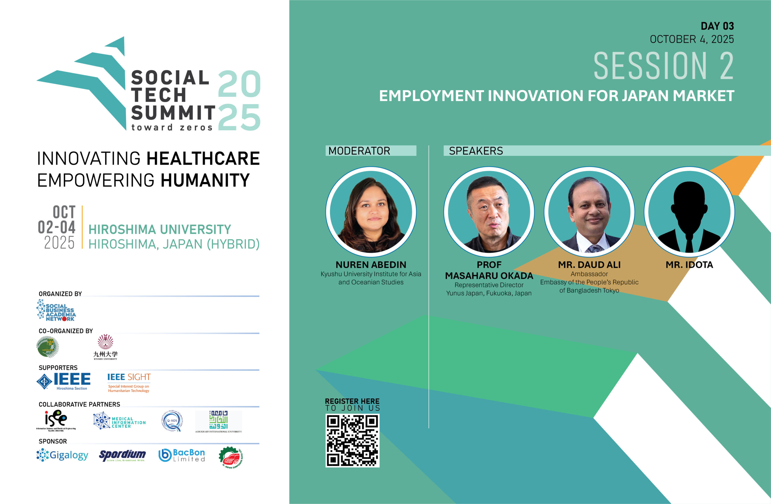 30 Sep [D3S2P1]: 10:00-12:00 Employment Innovation for Japan Market 10:00-12:00 Employment Innovation for Japan Market Spearkers: Prof Masaharu Okada, His Excellency Mr. Daud Ali, Mr. Idota Moderator: Nuren Abedin