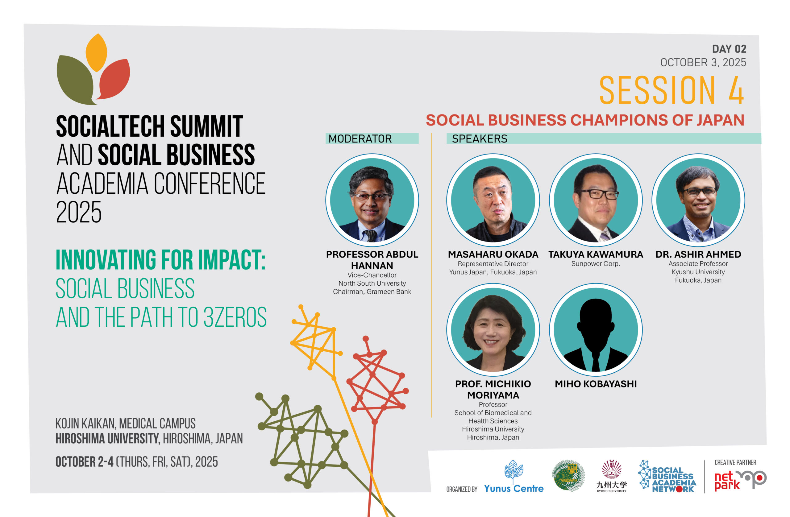 29 Aug [D2S4]: Session Title: Social Business Champions of Japan Moderator: Professor Abdul Hannan Masaharu Okada, Takuya Kawamura, Ashir Ahmed, Prof. Michikio Moriyama
