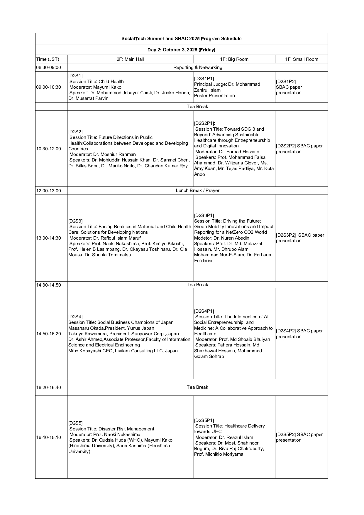 Program Schedule
